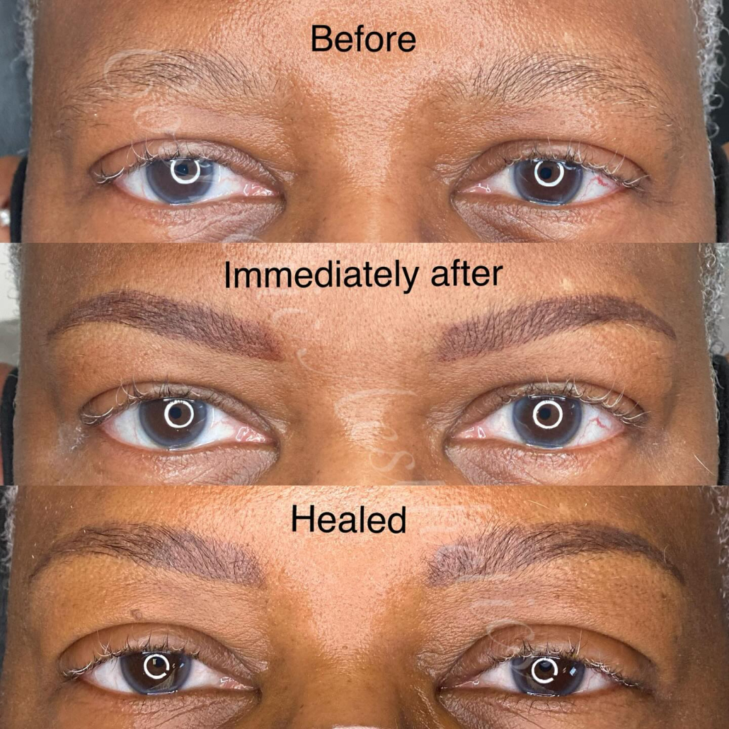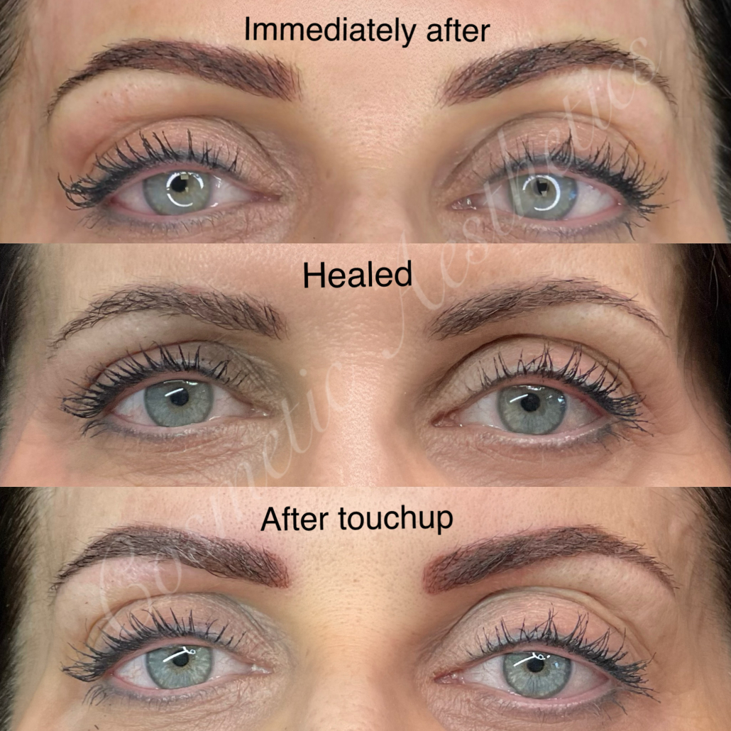 At Cosmetic Aesthetics in Phoenix, AZ, we offer microblading, ombre powder brows, nano brows, color corrections, and immediate mistake removals. Our expert artist, Taryn, excels at fixing botched eyebrows from other providers, with corrections available up to five days post-procedure. See all our services.